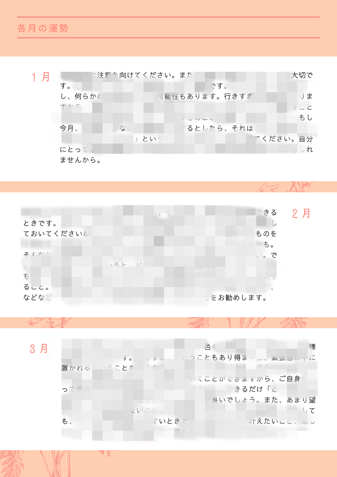 ↓サンプル画像(一部のみ表示:2024年上半期のあなたの運勢より)